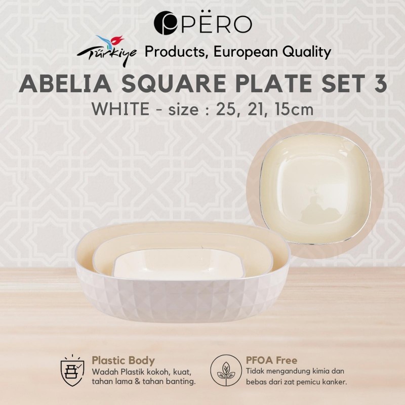 Deskripsi ProdukSet Piring Perabotan✨ [BEST DEAL] Pero Abelia Square Plate Set 3 ✨WHITE - size : 25, 21, 15cmGREY - size : 25, 21, 15cmGREEN - size : 25, 21, 15cmGOLD - size : 25, 21, 15cmBpa free - pp5 plastic, food grade