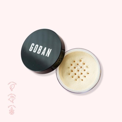 GOBAN Translucent Setting Powder in Blur gives the skin a locked flawless matte finish. The luxurious superfine powder blur appearance of pores and fine lines. Its lightweight formula controls shine for longer-wearing makeup even in tropical climate, yet still perfect to be applied on top of bare skin. this translucent powder is the perfect fit for all skin tone. Stay fresh and oil-free all day. Direction : Gently press the powder using puff and dust off with brush onto bare face or on top of cream or liquid make up to set and lock your oil-free look Storage : keep in cool and dry place, away from direct sunlight Ingredients : Talc, Aluminum Starch Octenylsuccinate, Polymethyl Methacrylate, Silicon Dioxide Hydrate, Nylon-12, Diisostearyl Malate, Phenyl Trimethicone, Squalane, Phenoxyethanol, CI 77891, Tocopheryl Acetate, CI 77492, CI 77491, Ethylhexylglycerin, Aluminum Hydroxide, Hydrogen Dimethicone, Triethoxycaprylylsilane.