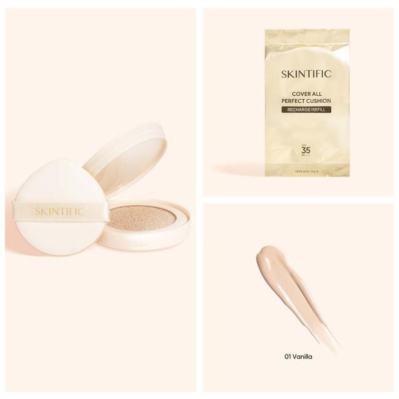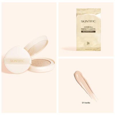 Cover All Perfect Cushion dengan hasil akhir sempurna dalam 1 kali tap, memberikan coverage tinggi dan hasil akhir yang flawless. Dapat membantu mengontrol minyak untuk mencegah kusam dan warna tidak merata. Dilengkapi serum ingredients seperti 5X Ceramide, Centella and Hyaluronic Acid yang menjaga kelembaban kulit serta SPF 35 PA++++ untuk melindungi kulit dari bahaya sinar UV. Rubycell Puff Technology dengan teardrop shape, lubang udara yang rapat untuk menciptakan hasil akhir halus, merata dan sempurna. Medium to full coverage, tekstur ringan dan memberikan efek segar dan terhidrasi tahan lama pada kulit. Tersedia dalam 7 pilihan warna : Vanilla, Ivory, Petal, Almond, Beige, Sand, Honey dengan kemasan double mirrored yang travel friendly, dengan ketebalan kurang dari 2 cm