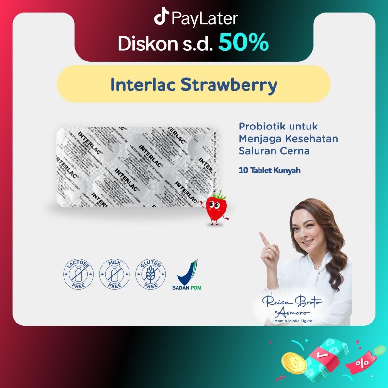 Interlac Probiotik Tablet Kunyah Strawberry 1 Strip @10 Tablet - Menjaga Kesehatan Saluran Pencernaa Rp130.000 |