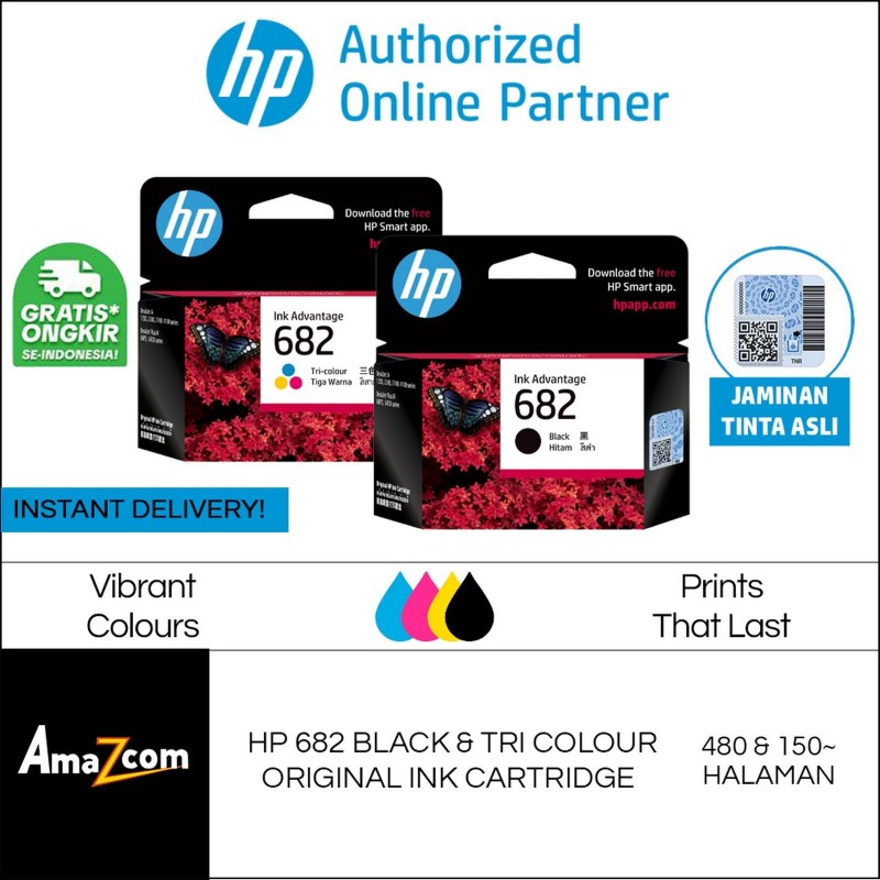 Tinta HP 682 Black+Tri Colour 1 Set Original Cartridge Tinta Printer HP 1216 2335 2336 2337 2775 277 Rp363.000 |