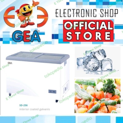 Friser kaca geser flat untuk display produk makanan beku (frozen food), antara lain : ice cream, nugget, french fries, sosis, dll. Dilengkapi thermometer digital agar mudah memantau suhu, serta knob thermostat untuk mengatur suhu yang di inginkan.