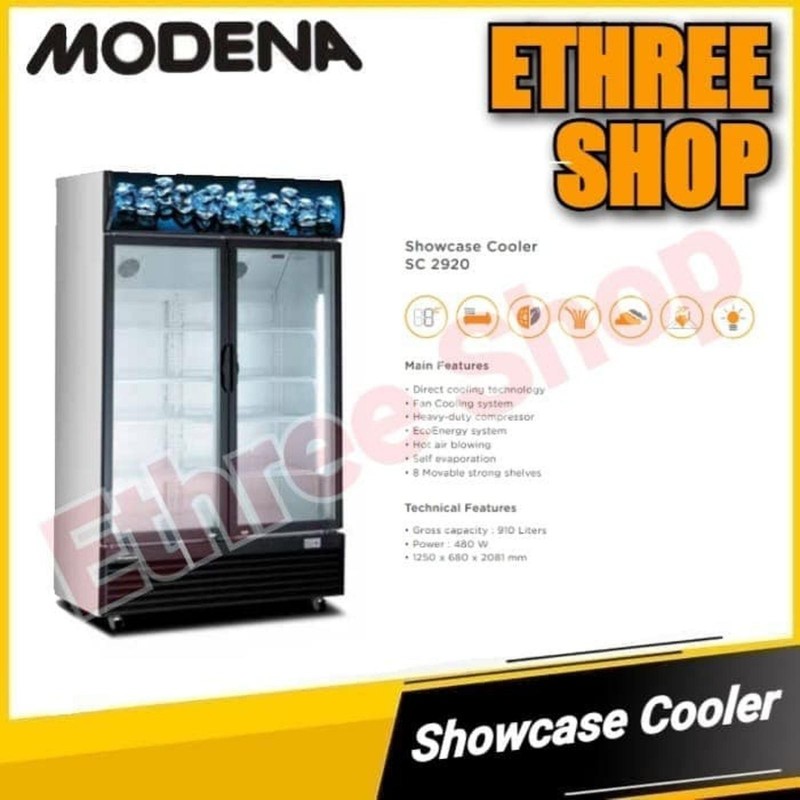 Pembelian Luar Kota Harap Konfirmasi Ongkos. Jenis : * COOLER * 2 DOORS * 2 LAYERS GLASS DOOR * BLACK Fitur : * DIRECT COOLING TECHNOLOGY * FAN COOLING SYSTEM * ECO ENERGY SYSTEM * ADJUSTABLE THERMOSTAT * TEMPERATURE DISPLAY * HOT AIR BLOWING * MOVABLE STRONG SHELVES * SELF EVAPORATION * INTERIOR LIGHT * HANDLE + LOCK * STURDY WHEEL * LIGHT BOX Spesifikasi : * CAPACITY : 910 L * POWER : 480 W * TEMPERATURE : 0 ~ 10°C * REFRIGERANT : R134A * NON CFC COMPRESSOR * SHELVES : 8 PCS * KEY : 2 PCS * DIMENSI PRODUK : 1250 x 680 x 2081 MM * WEIGHT : 152 KG