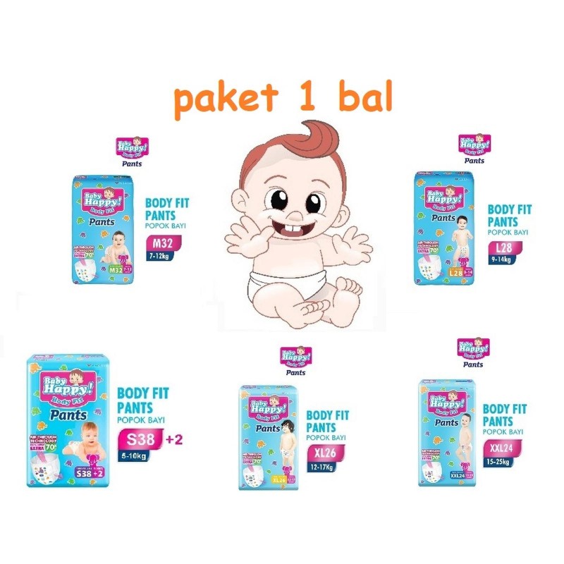 [TERMURAH 1 BAL] Baby Happy Pants S38+2/ M34 / L30 / XL26 / XXL24 BAYIBAHAGIA - 1 X BABY HAPPY S40