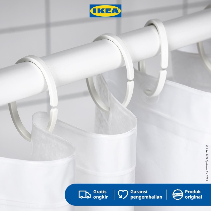 IKEA HASSJON Ring Tirai Kamar Mandi Putih Isi 12pcs