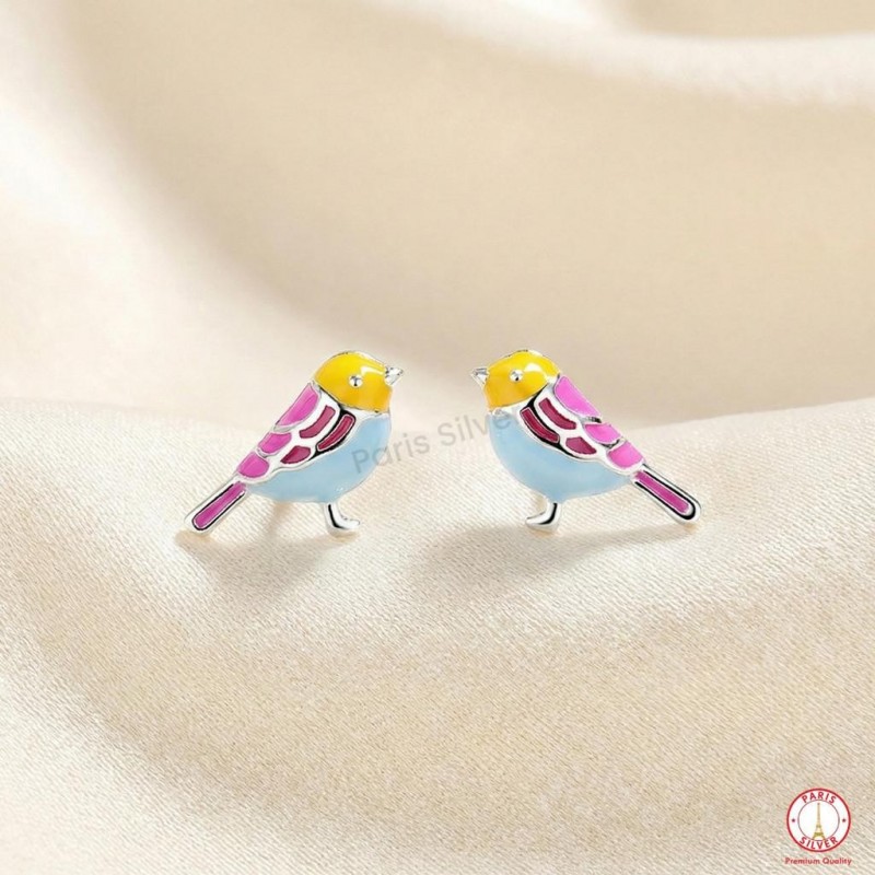 Anting perak model burung dengan warna pastel yang manis dan ceria.