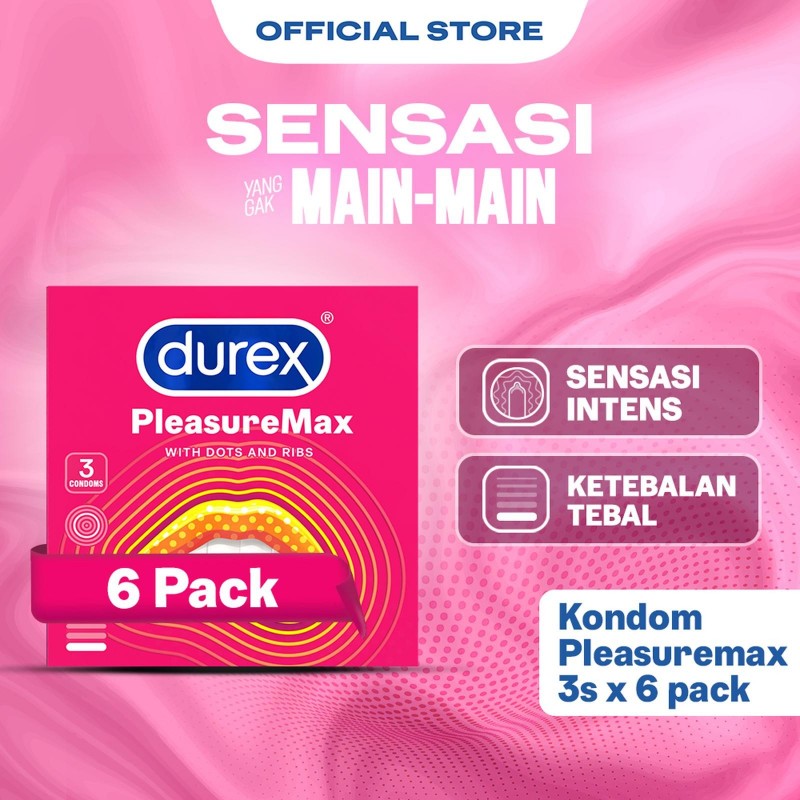 The Best Seller Durex Official Store. #34;100% PRIVASI ANDA TERJAMIN: - Tidak ada detail Durex di Kemasan amp; Resi - Nama Pengirim Reckitt Wellness Official Store - Fitur Easy On-Shape - Tidak Mudah Sobek - Terbuat dari lateks alami tetapi tidak berbau lateks - 100% Teruji Secara Klinis amp; Dermatologis - Alat Kontrasepsi yang efektif cegah kehamilan, HIV/AIDS amp; Penyakit Seksual Lainnya #34; DUREX Condom Pleasuremax menjamin stimulasi antara Anda dan pasangan. Didesain dengan bentuk khusus dengan posisi tulang rusuk yang unik dan kontur dot yang terangkat. Kontur tulang rusuk ini ditempatkan di bagian bawah kondom untuk menciptakan rangsangan klitoris. DUREX Condom Pleasuremax memiliki bau yang sedap atau harum. Anda dapat menikmati dengan santai tanpa mengkhawatirkan apapun. Memberikan Perlindungan Pada Saat Menggunakan DUREX Condom Pleasuremax adalah kondom yang memberikan keamanan bagi Anda pada saat menggunakannya. Dengan bahannya yang aman dan terbuat dari Latex, sehingga dapat mencegah Anda dari terjadinya penyakit seksual menular. Produk ini juga harus ditempatkan di tempat yang sejuk dan kering serta jauh dari sinar matahari untuk keamanan yang optimal. Kenyamanan Yang Luar Biasa Anda akan mendapatkan kenyamanan selama menggunakan DUREX Condom Pleasuremax. Selain itu bahannya yang transparan, berpelumas dan berbentuk dot pada ujung, membuat Anda semakin nyaman menggunakannya. Untuk Privasi Terjamin di Luar Penggunaan Bebas Ongkir