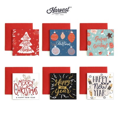 Kartu ucapan untuk perayaan Natal dan Tahun Baru dengan desain menarik yang terbuat dari bahan BW paper.Berukuran 7.5 cm x 7.5 cmPaket terdiri dari 6pcs kartu ucapan dengan 6 design berbeda sesuai di gambar.