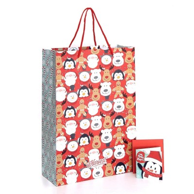 Paket kemasan Natal yang terdiri dari Paper Bag dan Kartu Natal. Isi: - 1 pc Paper Bag dari Harvest yang terbuat dari bahan Doff Coated Art Carton, berukuran 35cm x 11cm x 25cm. - 1 pc Kartu Ucapan dengan desain menarik yang terbuat dari bahan BW paper, berukuran 7.5 cm + 7.5 cm x 7.5 cm